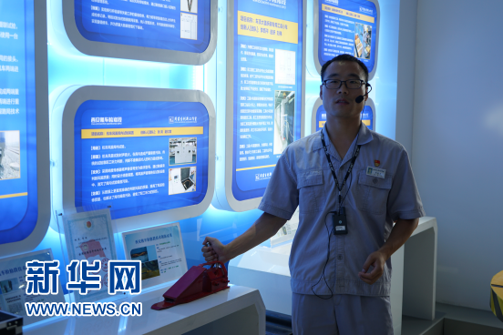 周苗生現(xiàn)場講解并展示技術(shù)改革成果(6月25日攝)。新華網(wǎng) 王頔攝