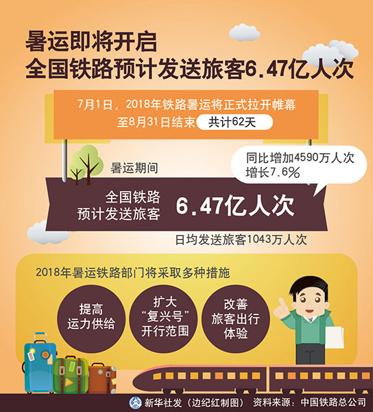 圖表:暑運(yùn)即將開(kāi)啟 全國(guó)鐵路預(yù)計(jì)發(fā)送旅客6.47億人次 新華社發(fā) 邊紀(jì)紅 制圖