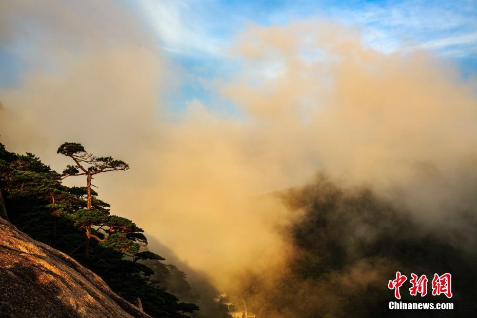 安徽黃山現(xiàn)云海晚霞