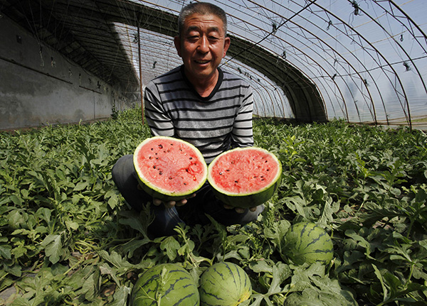 他發(fā)現(xiàn)大棚西瓜近年來市場行情不錯