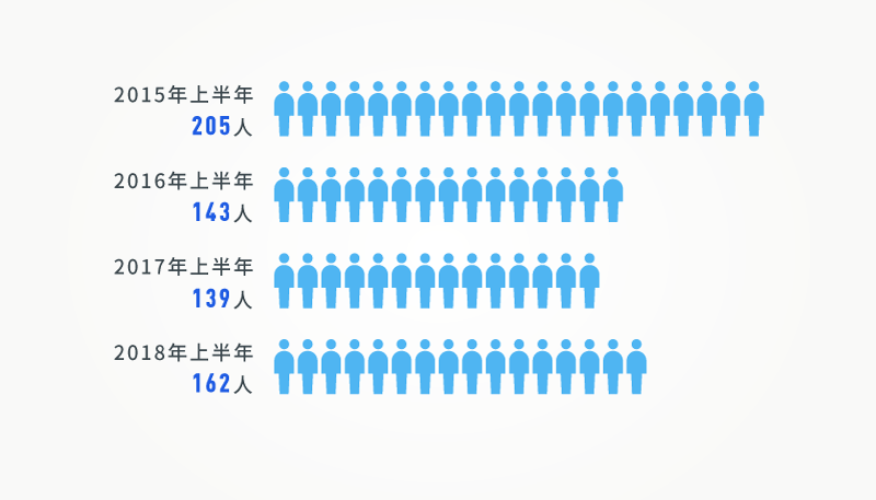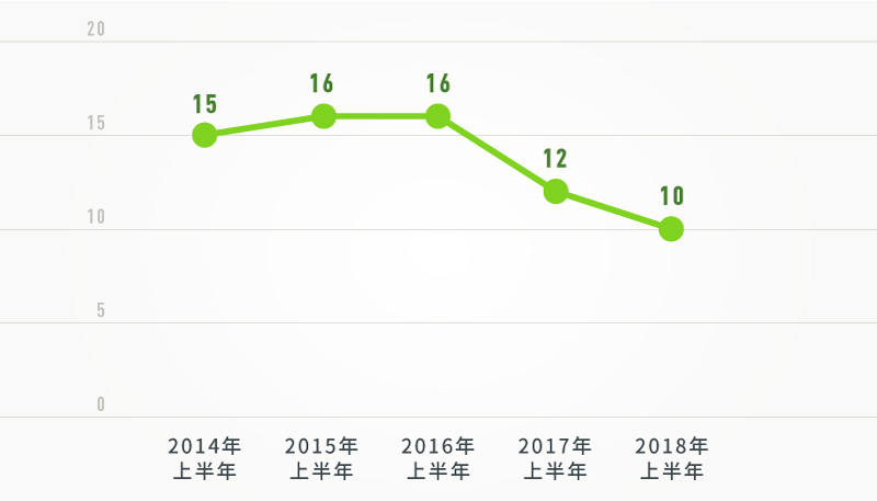 2015年以來,上半年廳局級干部落馬數(shù)量走勢圖