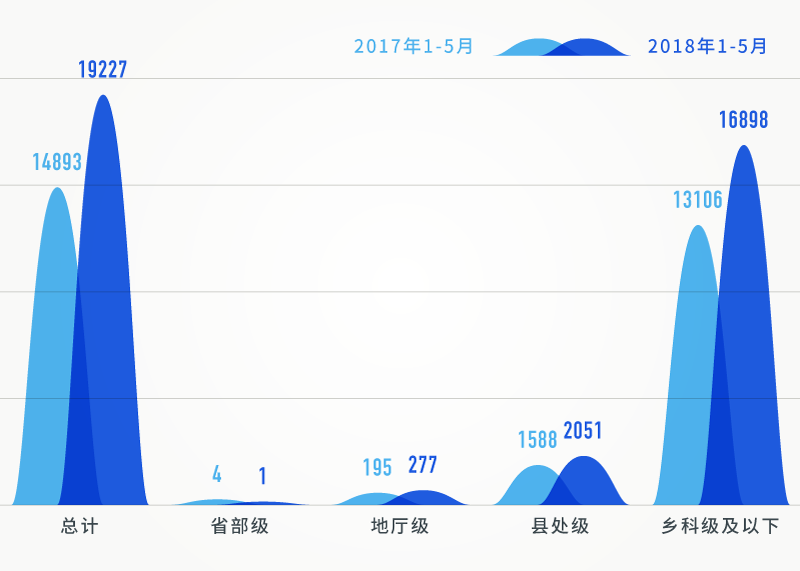 在給予黨政紀(jì)處分人數(shù)中,除省部級干部人數(shù)降低了以外,地廳級、縣處級、鄉(xiāng)科級及以下人數(shù)相比同期均大幅提升。特別是,今年1-5月,給予鄉(xiāng)科級及以下人員黨紀(jì)政務(wù)處分達(dá)16898人,相比同期增長28.9%,且占到了處分總?cè)藬?shù)的87.9%。反映出全面從嚴(yán)治黨不斷向基層延伸,持續(xù)加大查處群眾身邊的“四風(fēng)”和腐敗問題力度。