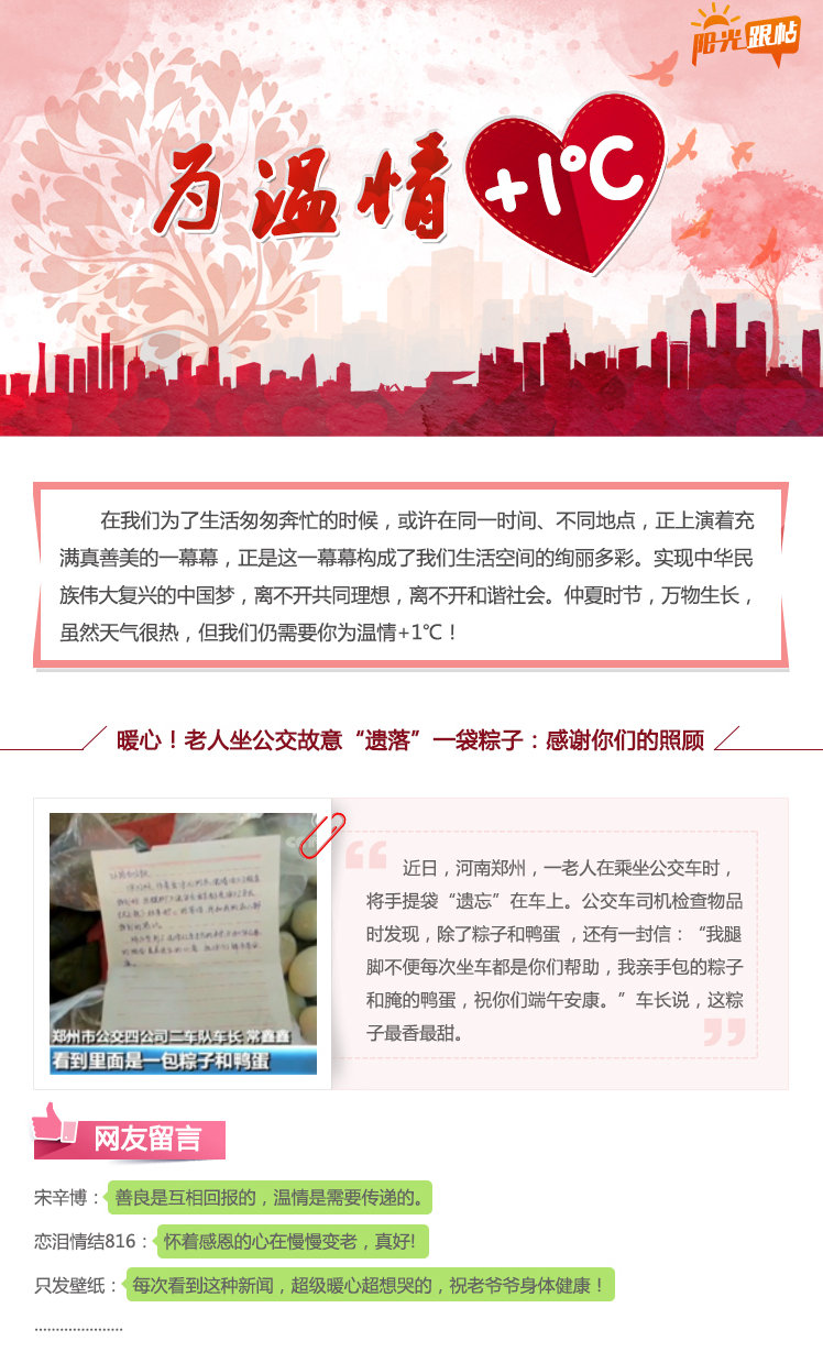 生活中這樣的溫暖時(shí)時(shí)刻刻都在上演,正是這些看似普通的舉動(dòng),匯集在一起溫暖了我們的生活,在溫暖接力中,下一個(gè)可能就是你。