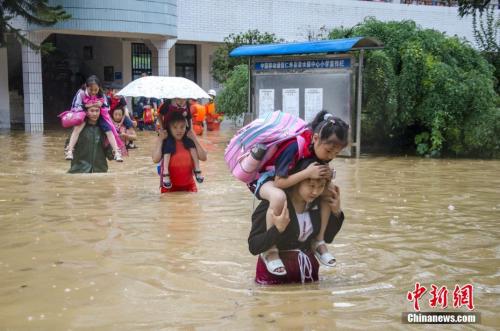 7月2日,四川仁壽縣清水鎮(zhèn)遭遇暴雨襲擊,清水小學(xué)進(jìn)水被淹,當(dāng)?shù)匮杆賳臃姥磻?yīng)急預(yù)案,1093名師生全部安全轉(zhuǎn)移。 梁衛(wèi)東 攝