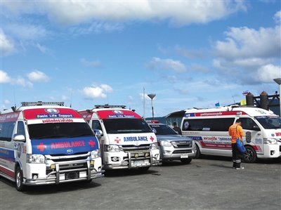 目前,普吉島查龍碼頭是搜救展開作業(yè)的地方,設(shè)有營(yíng)救指揮部,內(nèi)部配有醫(yī)護(hù)人員、旅游警察以及軍方人員,外面還有5輛救護(hù)車待命。當(dāng)天普吉島天氣晴好,站在碼頭可看到大皇帝島,乘快艇二十分鐘便可抵達(dá)事發(fā)地附近。