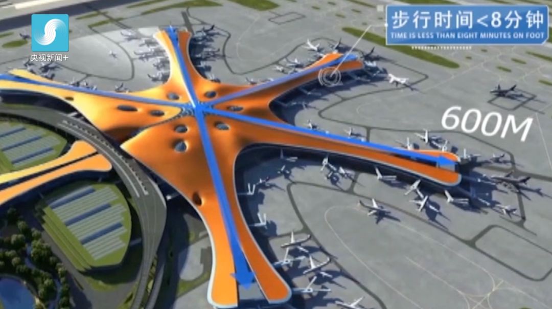 這樣的設(shè)計(jì)不僅可以設(shè)置更多的進(jìn)機(jī)位,而且也使航站樓中心到最遠(yuǎn)端登機(jī)口步行距離不超過600米,步行時(shí)間不到8分鐘。