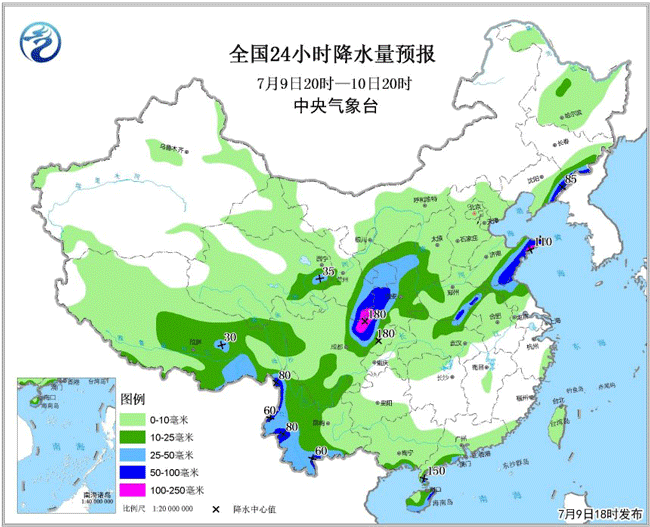 馬學(xué)款:未來幾天,我國主雨帶主要集中在四川盆地、西北地區(qū)東部、華北到東北等地。其中7月10日至11日,四川盆地西部、西北地區(qū)東部、華北、東北地區(qū)南部等地將有一次明顯降雨過程,大部地區(qū)有中到大雨,部分地區(qū)有暴雨,四川盆地西部、甘肅東南部、陜西西南部等地局地有大暴雨。11日上午前后,臺風(fēng)“瑪莉亞”將在福建北部到浙江南部一帶沿海登陸,受其影響,10日夜間至12日,我國臺灣島以東洋面、臺灣海峽、東海中南部海域、閩浙臺沿海將有較大風(fēng)雨天氣,臺灣島、福建、浙江南部、江西等地有暴雨或大暴雨、沿海局地有特大暴雨。