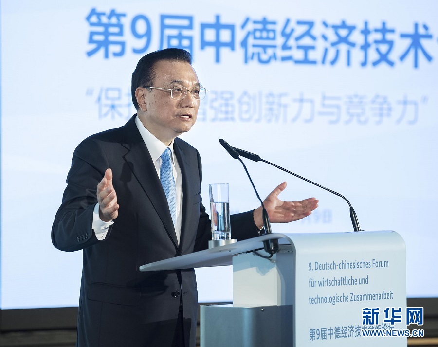 新華社柏林7月9日電(記者 王蕾 嚴(yán)鋒)當(dāng)?shù)貢r間7月9日晚,國務(wù)院總理李克強(qiáng)在柏林經(jīng)濟(jì)和能源部與德國總理默克爾共同出席第九屆中德經(jīng)濟(jì)技術(shù)合作論壇閉幕式并發(fā)表講話。