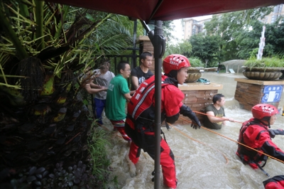 與唐成成一同被困的還有四個(gè)人,其中三人是朋友,另一人一樣由于獨(dú)行被困?!八粗鴿q,要是再過不去就麻煩了,后面就是大河,旁邊的水也過腰間了?!闭诮辜敝畷r(shí),一支趕到金海岸小區(qū)探查水情的消防隊(duì)員出現(xiàn)在了幾人面前。