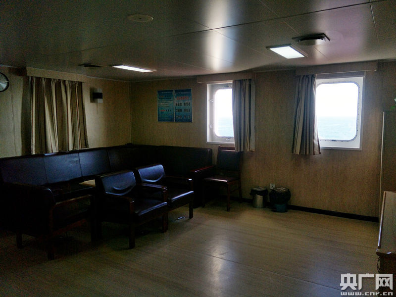 餐廳對面是船員休息區(qū),裝有衛(wèi)星電視。以前出海就相當(dāng)于與外界隔絕。而現(xiàn)在,打開船上的電視,每天都能看到十幾個(gè)頻道的電視節(jié)目。茫茫大海上,雖遠(yuǎn)離陸地,卻時(shí)時(shí)刻刻都可以看到國內(nèi)最新動(dòng)態(tài),信息無盲區(qū)。
