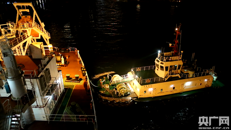 聽到指令后,停在貨輪一側(cè)的拖輪那頭回應(yīng):“拖輪,收到!”