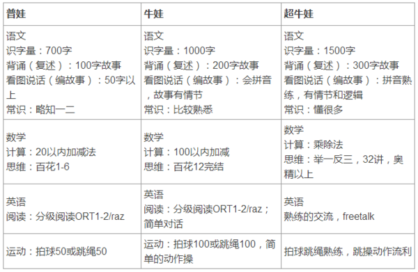 (網(wǎng)絡(luò)上流傳的“幼升小普娃牛娃”配置表截圖)