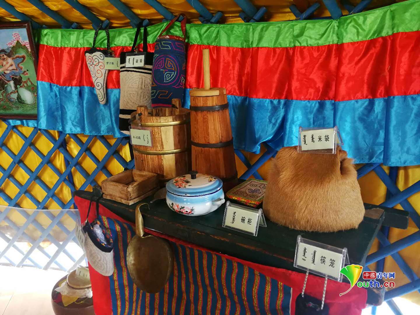 為了讓自家的旅游服務(wù)做的更好,蘇·呼格吉勒?qǐng)D專(zhuān)門(mén)設(shè)計(jì)了一個(gè)獨(dú)特的蒙古包“展廳”,里面全是牧民生產(chǎn)工具和生活用品:接羊羔的氈口袋、做酸奶的竹筒、弓箭、燭臺(tái)、皮口袋、搖籃等等。作為一個(gè)熱愛(ài)傳統(tǒng)民俗的牧人,蘇.呼格吉勒?qǐng)D把這些帶有蒙古族文化元素的“寶貝”一一收集起來(lái),讓每一位來(lái)到這里的游客都能親身體驗(yàn)到傳統(tǒng)游牧文化的魅力。