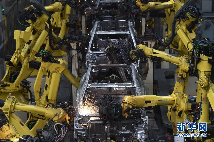 在寧波市北侖區(qū)吉利汽車春曉制造基地拍攝的自動(dòng)化焊接線(2016年7月22日攝)。吉利汽車春曉制造基地采用全自動(dòng)化焊接線,通過114臺(tái)焊接機(jī)器人完成車身各部分的焊接,以保證車身制造精度的穩(wěn)定。 新華社記者 黃宗治 攝