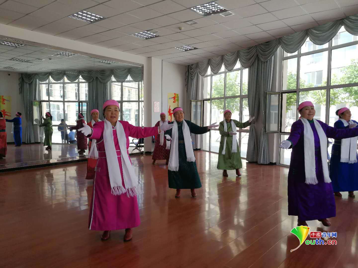 愛祺樂牧民養(yǎng)老園區(qū)內(nèi)的老人們在進(jìn)行歌舞表演。中國青年網(wǎng)記者王曉蕓 攝