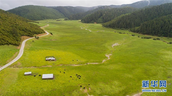 普達(dá)措國家公園彌里塘片區(qū)風(fēng)景(7月18日無人機拍攝)。 新華社記者 胡超 攝