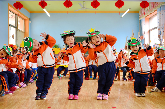 河北省邢臺(tái)市橋東區(qū)第二幼兒園的小朋友們在唱兒歌 牟宇 攝