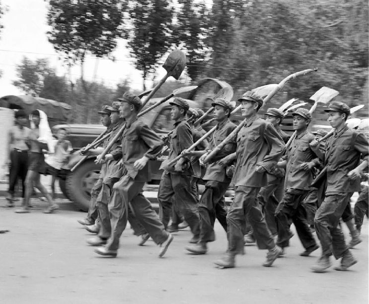 震后,大批人民解放軍日夜兼程奔赴災(zāi)區(qū),搶救人民生命財產(chǎn)。(1976年8月1日發(fā))新華社記者 武清月 攝