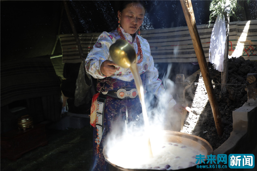 正在熬制奶茶的東科日村村民。未來網記者謝深森 攝
