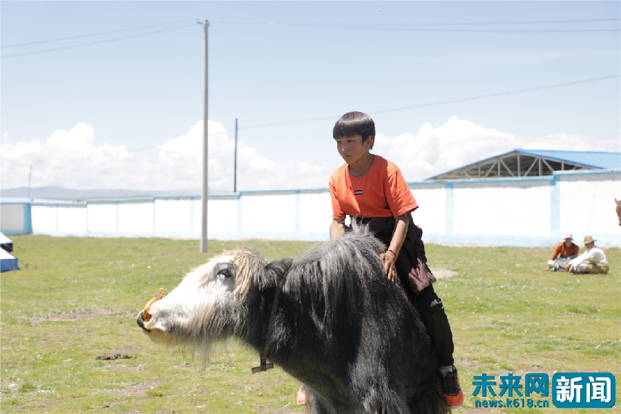 練習騎牦牛的東科日村小勇士。未來網記者謝深森 攝