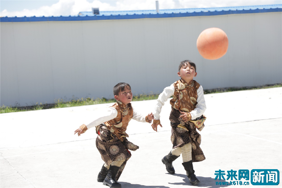 在陽光下開心打籃球的東科日村孩子。未來網記者謝深森 攝