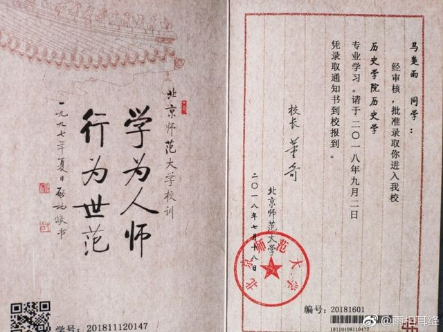 北京師范大學(xué)的素雅古樸風(fēng)錄取通知書(shū),美到?jīng)]朋友