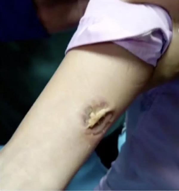 記者來(lái)到醫(yī)院看到劉珊時(shí),事情已經(jīng)過(guò)去了十天,被咬的傷口已慢慢恢復(fù),但是依然清晰可見被咬的痕跡。而患者病情好轉(zhuǎn),已經(jīng)轉(zhuǎn)到普通病房接受進(jìn)一步治療。