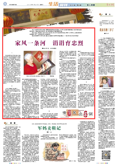 眼瞅著又快到建軍節(jié)了,昨個(gè)兒,我叫來大兒子敬朋,指著門楣上懸掛的“光榮之家”牌匾,對(duì)他說:“兒啊,把匾取下來,擦干凈,8月1日那天早上咱再掛上去,要讓早上的太陽,首先照亮它。因?yàn)椤褪窃奂掖鄠?、鮮血凝成的家風(fēng)?。 保钪?口述 謝學(xué)楓/整理)