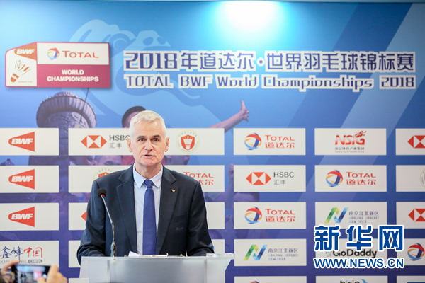 7月17日,國際羽聯(lián)首席運營官斯圖爾特·博里在抽簽儀式上講話。 當日,2018年羽毛球世錦賽抽簽儀式在馬來西亞吉隆坡舉行。本屆羽毛球世錦賽將于7月30日到8月5日在中國南京舉行。 新華社記者朱煒攝