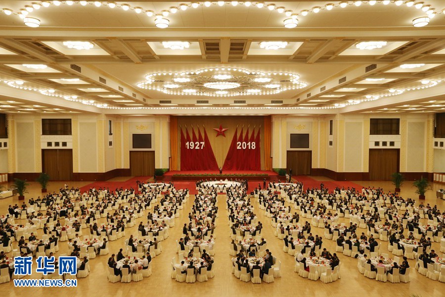 7月31日,中華人民共和國國防部在北京人民大會堂舉行招待會,熱烈慶祝中國人民解放軍建軍91周年。 新華社記者 李一葉 攝