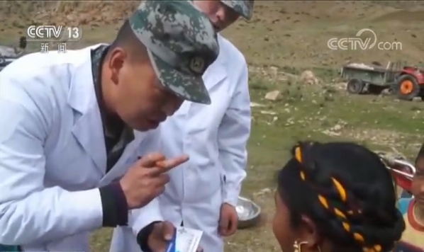 西藏薩嘎縣甲村村民巴桑說,(藏語翻譯成的漢語)我們甲村這邊解放軍又來了,就是給貧困戶幫助,特別是為我們送來了急需的物資,給村里的病人看病,特別感謝解放軍。