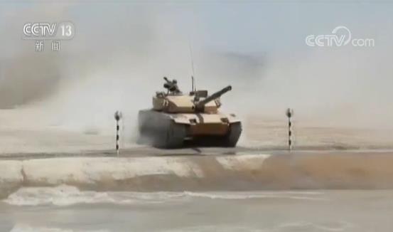 這是坦克在通過車轍橋障礙,每邊橋面比坦克履帶稍寬,郭圣東駕駛坦克以每小時40公里以上的速度開上橋面,直接躍起,騰空通過。通過這個障礙要求在距離障礙30米前就要對正方向,稍有猶豫,坦克就會偏離方向,掉下橋面,這不僅考驗駕駛技能,更是對應急反應能力和心理素質的檢驗,不少參賽的駕駛員都在這栽了跟頭,郭圣東每次都能速度不減,漂亮通過。