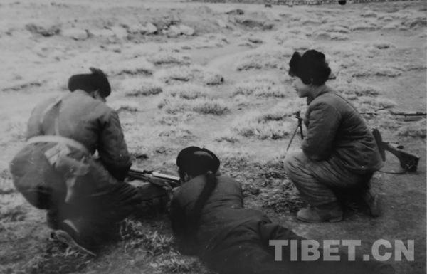 圖為西藏文工團(tuán)老照片:女文工隊(duì)員也很喜愛射擊 圖片由王勉之提供
