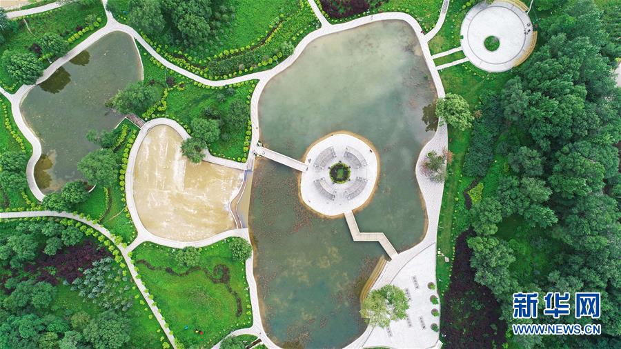 寧夏固原市涇源縣臥龍山公園(7月19日無人機拍攝)。 新華社記者 王鵬 攝