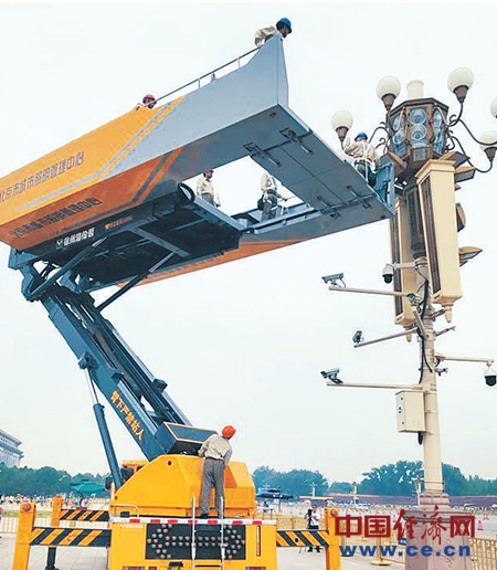 華燈車在檢修和清洗華燈。經(jīng)濟(jì)日報(bào)-中國經(jīng)濟(jì)網(wǎng)記者 常 理攝