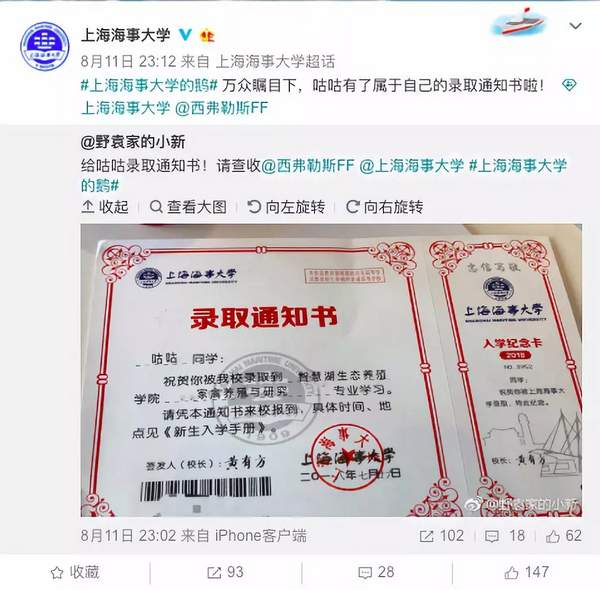 除了“咕咕”,其實上海海事大學還有一群鵝,它們早就已經(jīng)是學校的“網(wǎng)紅”了,還有自己的微博。