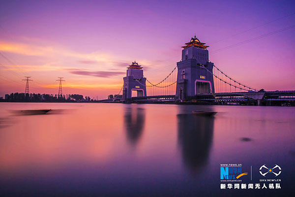 新華網(wǎng)無人機隊拍攝的江蘇揚州萬福大橋。