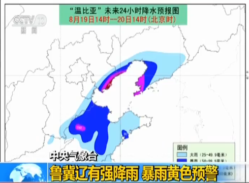 今年第18號(hào)臺(tái)風(fēng)“溫比亞”已于昨天(18日)下午減弱為熱帶低壓,中央氣象臺(tái)解除臺(tái)風(fēng)藍(lán)色預(yù)警。但它減弱后的低壓還將繼續(xù)北上,受其影響,仍會(huì)給山東、河北、遼寧等地部分地區(qū)帶來(lái)強(qiáng)降雨,中央氣象臺(tái)上午10點(diǎn)發(fā)布暴雨黃色預(yù)警。