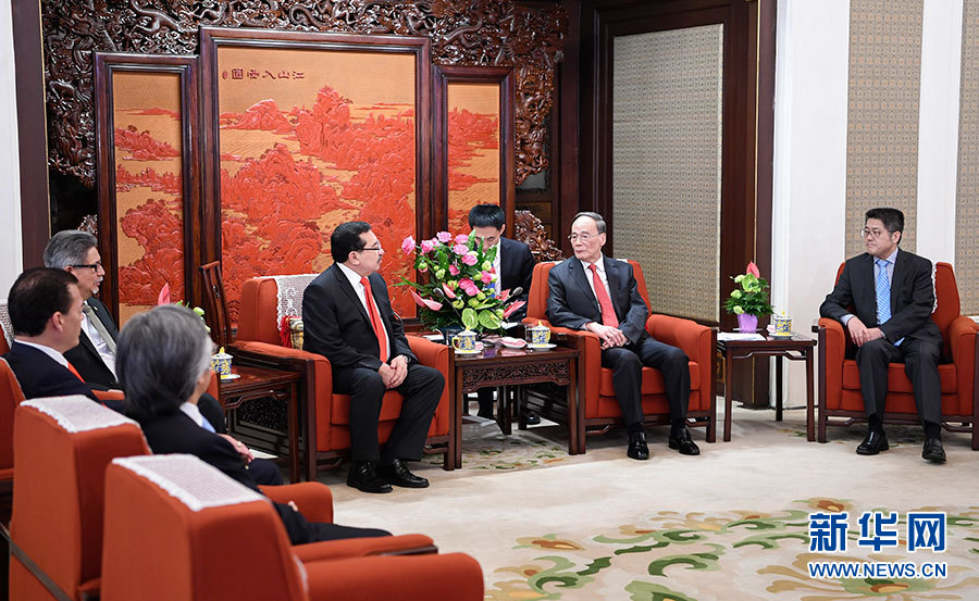 8月21日,國家副主席王岐山在北京中南海會(huì)見薩爾瓦多代理總統(tǒng)職務(wù)第一指定人岡薩雷斯、總統(tǒng)法律秘書阿爾瓦拉多、外長卡斯塔內(nèi)達(dá)。 新華社記者 張領(lǐng) 攝