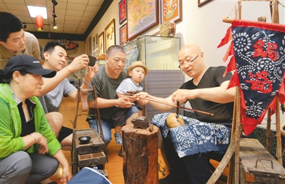在遼寧省錦州市群眾藝術(shù)館非物質(zhì)文化遺產(chǎn)保護中心,鋦瓷傳承人姜波(右一)在為人們表演鋦瓷。李鐵成攝(人民視覺)