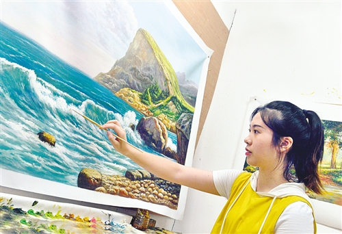 江西省黎川縣油畫創(chuàng)意產(chǎn)業(yè)園,畫師在繪制長(zhǎng)江油畫。近年來(lái),該縣大力發(fā)展以油畫為主的文化產(chǎn)業(yè),油畫創(chuàng)意產(chǎn)業(yè)園年創(chuàng)產(chǎn)值1.2億元。 王武輝攝