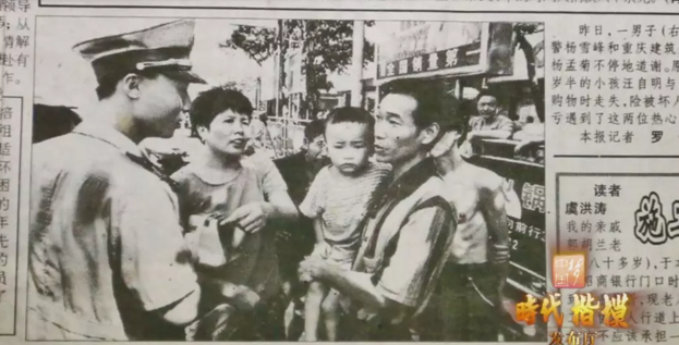 有兩個陌生男子,聲稱是他的爸爸,試圖領(lǐng)走他。幸虧遇到了剛參加工作不久的21歲民警楊雪峰。楊雪峰抱著他找遍了整個百貨公司,終于找到了滿頭大汗焦急萬分的爸爸。