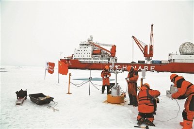 “和以往的北極科考相比,‘九北’冰上作業(yè)涉及的學科和種類沒有太大差別?!钡瓶缄犑紫茖W家助理雷瑞波總結稱,這次冰上作業(yè)的一個顯著特點是加強了無人值守觀測系統(tǒng)的布放,包括3套自動氣象站、2套無人冰站、3個海洋剖面浮標、24個海冰物質平衡浮標、15套海冰漂移浮標等?!按舜尾挤诺臒o人觀測系統(tǒng)的數量創(chuàng)下歷次北極科考之最,并且其中大部分(約占80%)均為我國自主研發(fā)或集成?!崩兹鸩ㄕf,這些將為研究北極地區(qū)氣、海、冰的相互作用過程及其對北極生態(tài)系統(tǒng)和海洋環(huán)境的影響提供有力支撐。