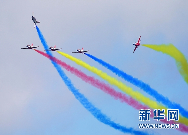 8月30日,“天之翼”飛行表演隊(duì)在空軍航空開放活動上進(jìn)行飛行表演。 新華社記者 王東明 攝