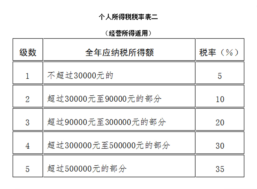 “(二)經(jīng)營所得,適用百分之五至百分之三十五的超額累進稅率(稅率表附后);