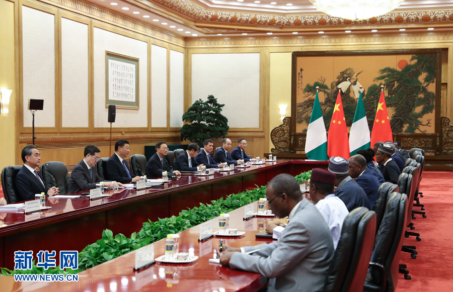 習(xí)近平強調(diào),在中非雙方共同努力下,中非合作論壇北京峰會成功閉幕,中非全面戰(zhàn)略合作伙伴關(guān)系的內(nèi)涵進一步充實豐富,成為中非團結(jié)合作的一次歷史性盛會。尼日利亞是非洲大國,也是中國在非洲重要的合作伙伴,我高度重視中尼關(guān)系發(fā)展。兩國關(guān)系正處于歷史上最好時期。中方贊賞尼日利亞政府堅持一個中國政策,愿繼續(xù)同尼方在涉及彼此核心利益和重大關(guān)切問題上相互理解和支持。中方歡迎尼方參與“一帶一路”建設(shè),愿同尼方深化基礎(chǔ)設(shè)施建設(shè)、農(nóng)業(yè)、產(chǎn)能等領(lǐng)域合作,密切人文交流,助力尼日利亞經(jīng)濟社會發(fā)展,將中尼合作打造成中非合作的典范。