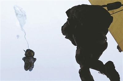 俄羅斯特戰(zhàn)隊(duì)員高空傘降。