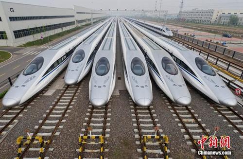 資料圖:高速動(dòng)車(chē)組準(zhǔn)備出廠投入運(yùn)營(yíng)。 中新社發(fā) 徐崇德 攝