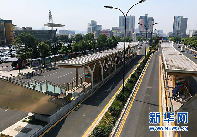 公交專用道設(shè)立在馬路中央,減少了道路兩側(cè)路口以及其他社會(huì)車輛對(duì)公交運(yùn)營的影響。新華網(wǎng) 郝多 攝