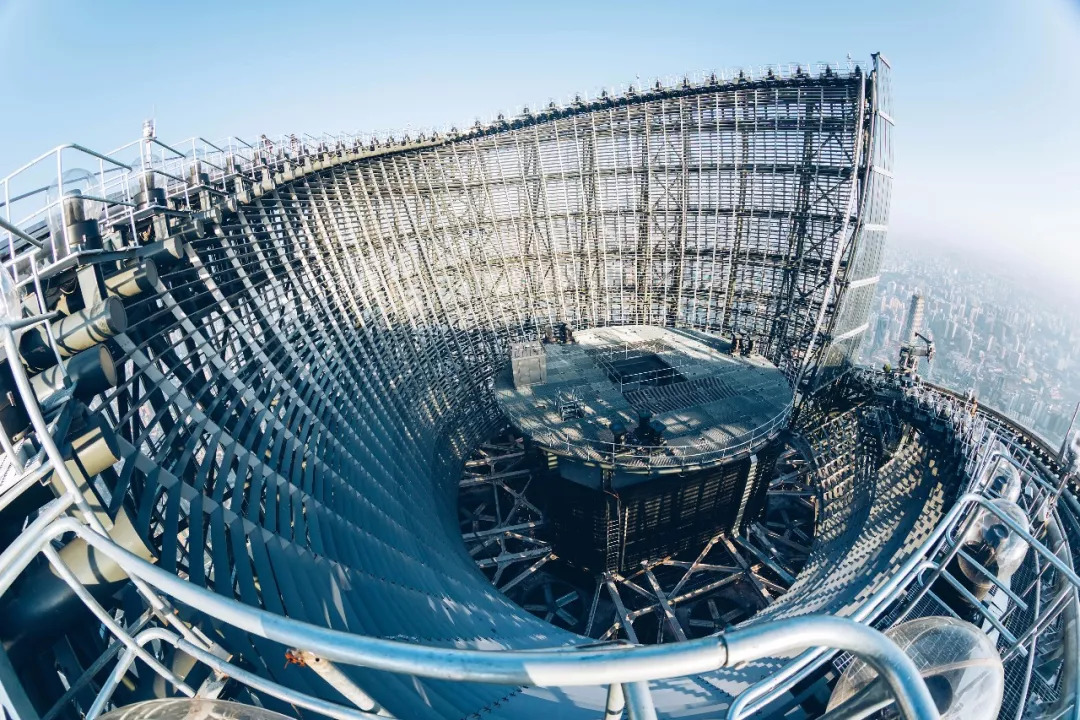 未完工的上海中心樓頂全景,